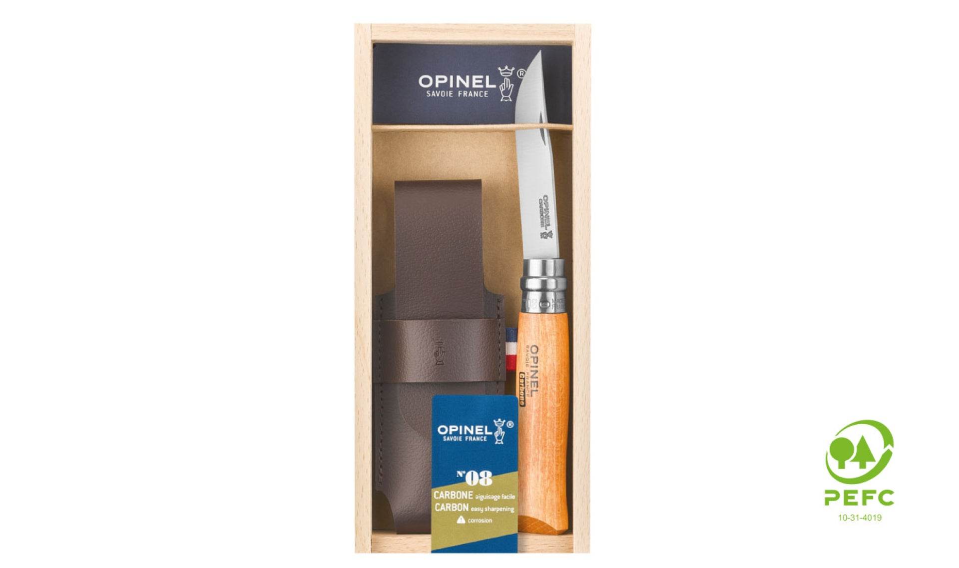 Mångsidig och oumbärlig – Opinel N°08 Carbon är perfekt för små DIY-projekt, camping och jakt. Den eleganta trälådan med plexiglaslock gör detta set till en utmärkt present, där både fällkniven och den alpina slidan ingår.